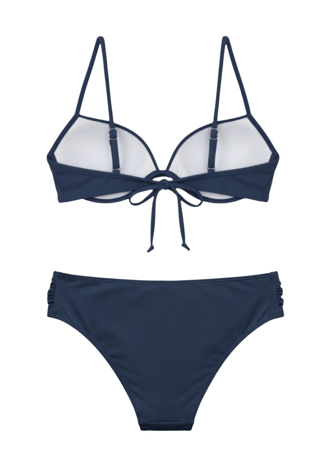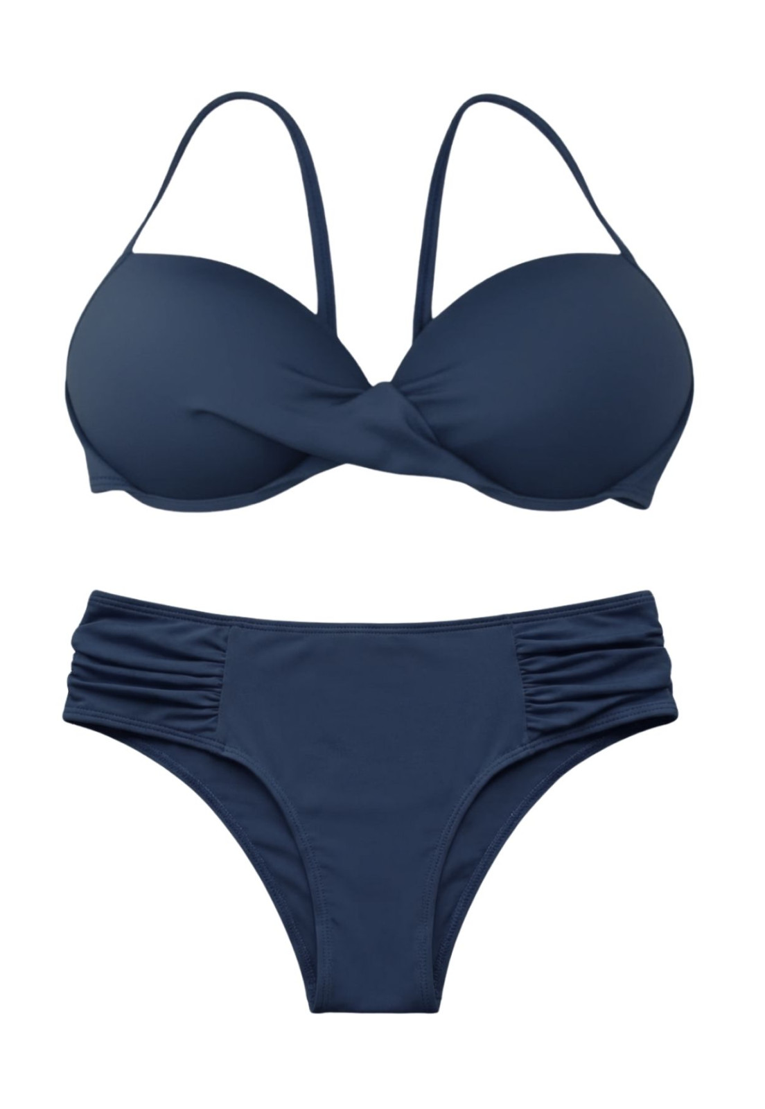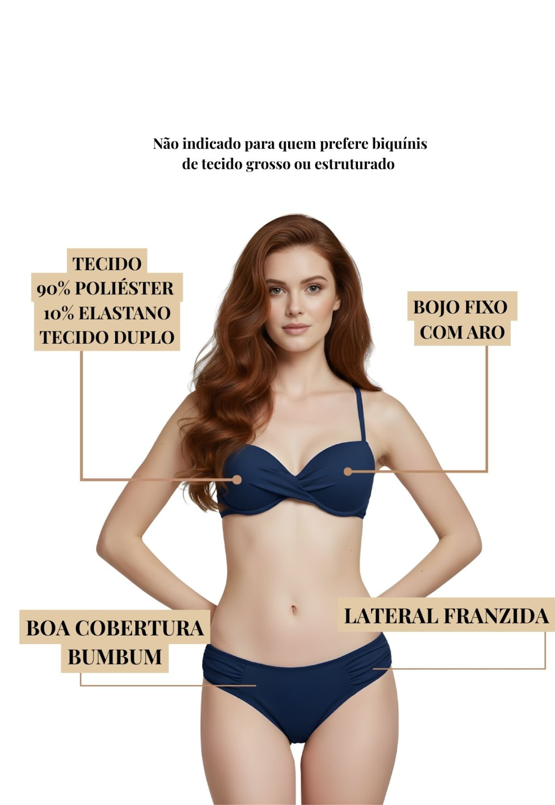 Biquíni Conjunto Top Meia Taça + Calcinha Plus Franzida Azul Marinho