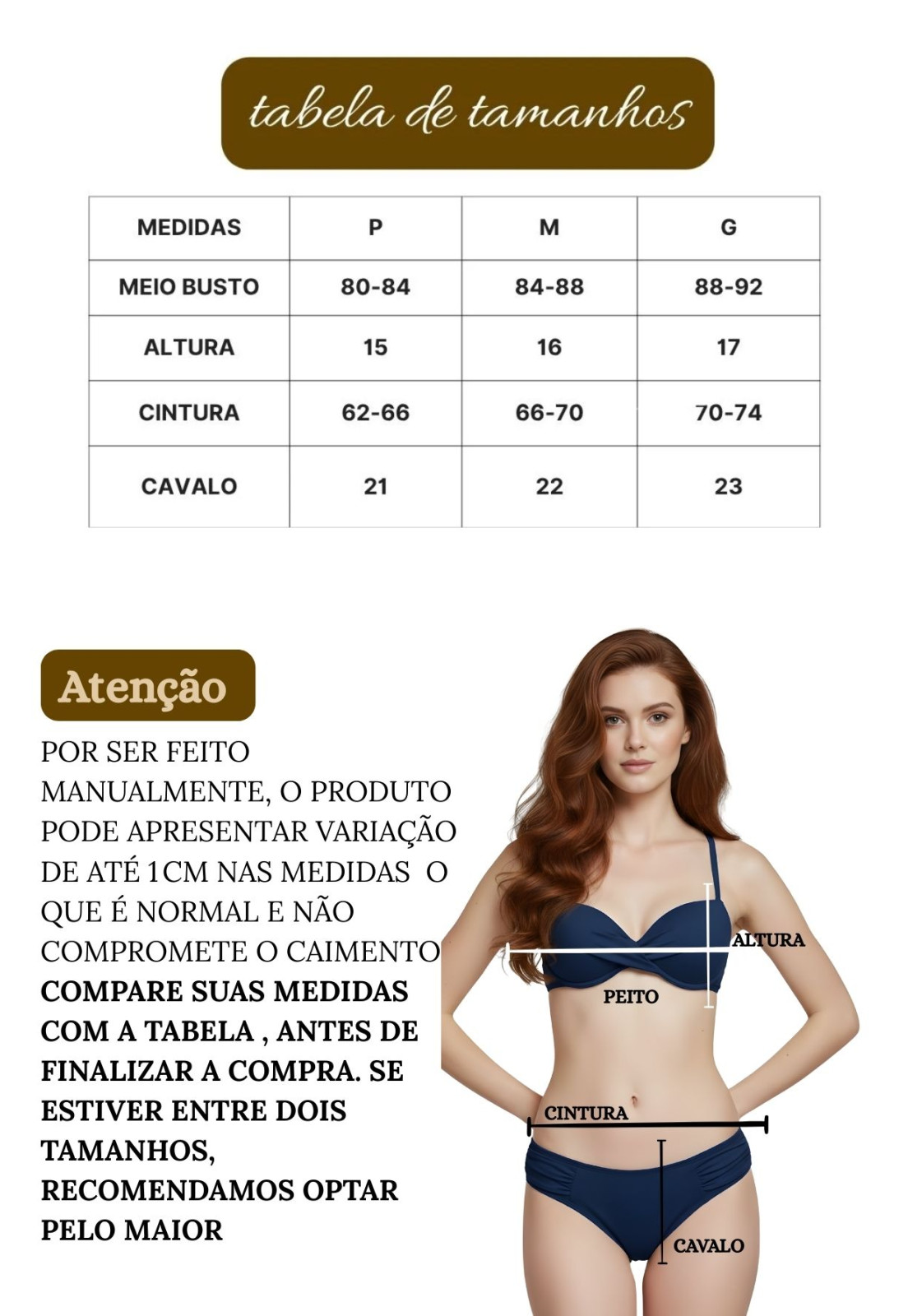Pensado para proporcionar segurança, conforto e elegância em todos os momentos de sol. O top meia taça com bojo fixo oferece sustentação eficiente ao busto, ajudando a modelar o corpo com firmeza e conforto durante o uso.