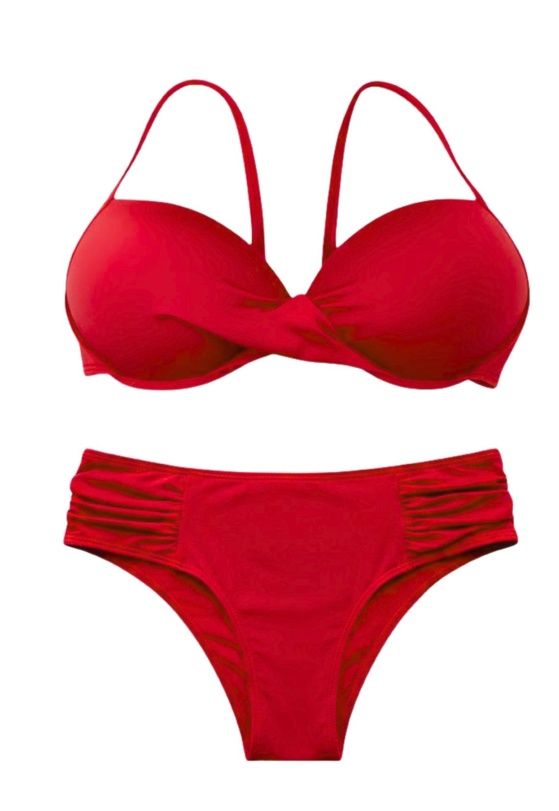 Biquíni Conjunto Meia Taça + Calcinha Plus Franzida Vermelho