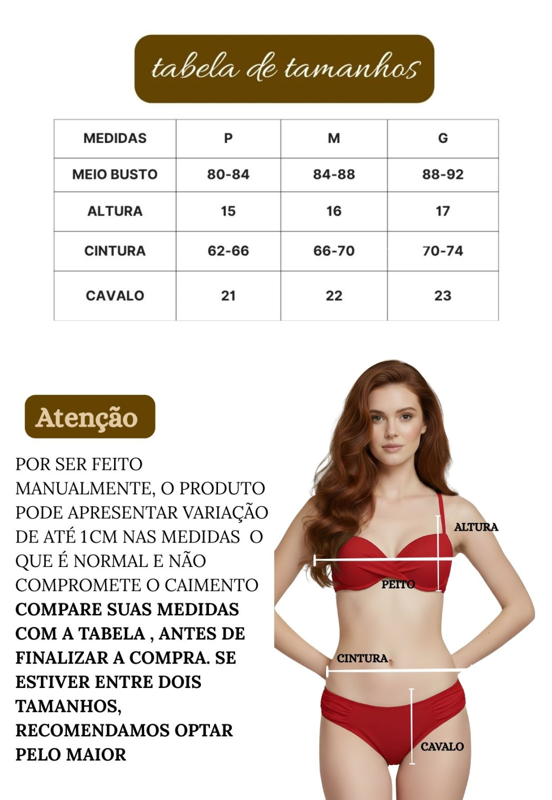 Compare suas medidas com a tabela antes da compra.