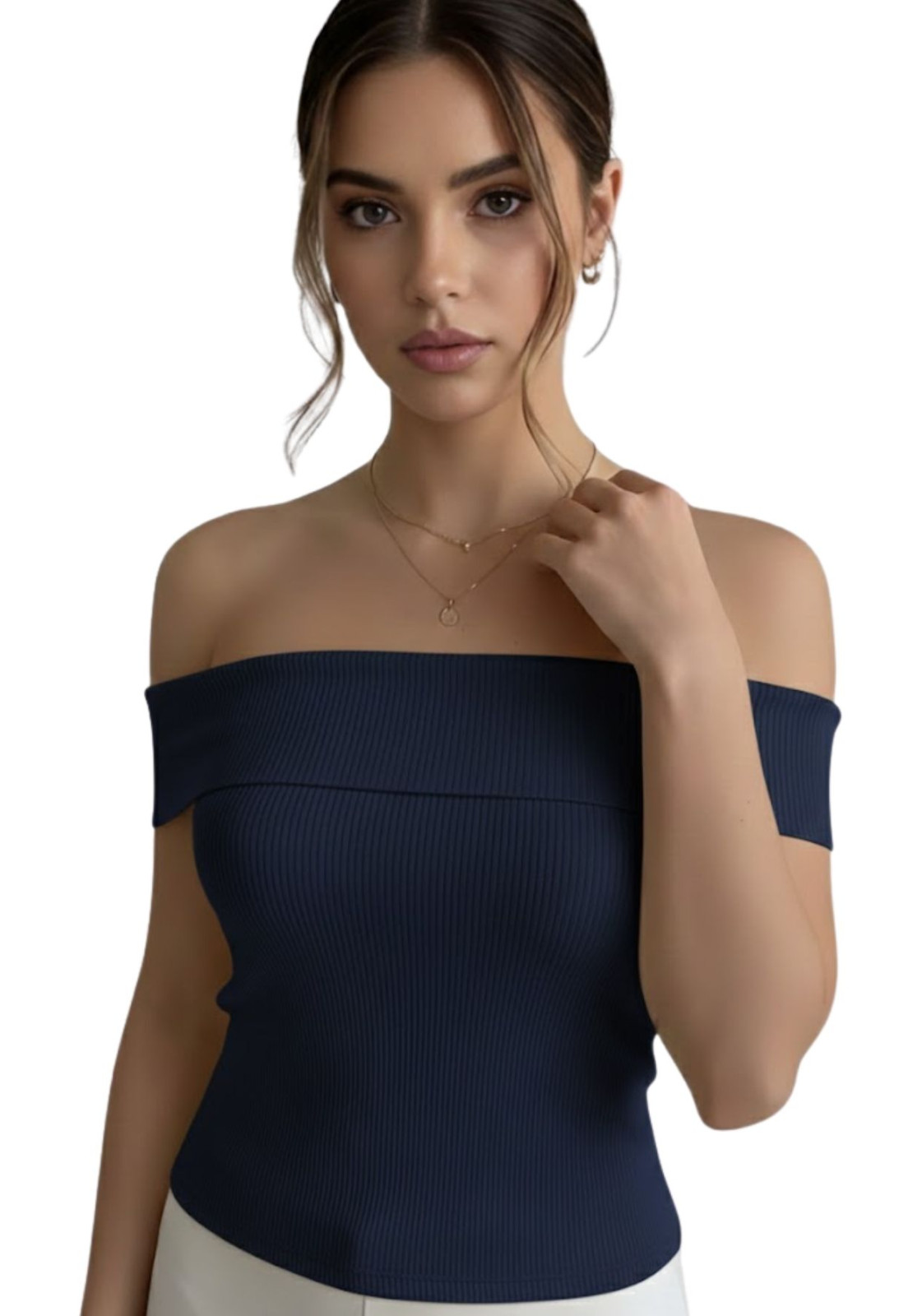 Combine sua Blusa Ombro a Ombro Canelada com uma calça de alfaiataria para um look de trabalho moderno e elegante, ou aposte em uma saia midi plissada para um jantar especial. Para um visual mais descontraído, jeans de cintura alta e tênis brancos criam uma composição urbana e cheia de estilo. Acessórios delicados, como um colar minimalista ou brincos pequenos, complementarão perfeitamente o decote.